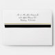 Elegant wedding invitation envelope with graphics of a gold foil look, on the inside. The back flap has a black and gold stripe on the edge. Personalise the return address, on the back flap, for your special day.