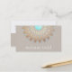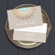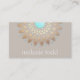 This classy lotus flower illustration has a beautiful fusion of retro, modern and new age. Mandala inspired faux gold leaf rosette medallion is perfectly accented by medium tan background. Turquoise blue centre.*Please note that gold foil is a digital image - no texture or shine. An artistic and earthy business card ideal for those in the healing arts, landscape design, all natural or organic beauty, chic fashion or nature based consumer goods and services.