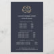 Elegant flyer design for spas, holistic health and wellness practices, yoga studios or massage therapists displays your services or price list in classic white lettering on a navy blue background adorned with a faux gold foil lotus flower illustration. Includes three customisable headings and body text fields, and space for your business contact information along the bottom. To adjust layout, enter your text and then use the Customise function to change positioning and font sizes.