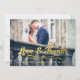 LOVE AND THANKS TYPOGRAPHY WEDDING THANK YOU CARD WITH PHOTO | GOLD FOIL PRINTED PHOTO EFFECT. Design by Elke Clarke© Available at www.zazzle.com/monogramgallery. Send out your wedding thank you message as newly weds to your friends and family using this retro, thank you wedding photo card with the words "Love & Thanks" written in a gold foil (printed photo effect) bold handwriting typography script text overlay. Replace the sample photo with your own. Add your personal thank you message on the back or leave blank and hand write your message in person. Other colours available.