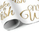 This cute gift wrap is perfect for birthdays. Gold Make a Wish Birthday Wrapping Paper has gold lettering on a white background.