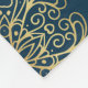 A pattern of beautiful gold mandalas repeated into an ornate damask pattern. The gold is shiny to imitate real gold foil. The mandalas are designed with intricate, hand drawn line work and placed on a deep navy blue background.