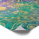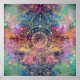 This artwork has a boho-chic and dreamy feel with a whimsical floral gold tribal mandala design placed on a beautiful colourful watercolor Orion nebula and stars background. The design features Aztec and mystical elements, the universe and nature.