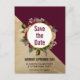 Gold Marble and Burgundy Floral Save the Date Postcard