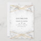 Wedding save the date featuring a marble texture with a gold geometric frame and a gold foil marble reverse.