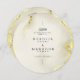 This round wedding menu is a real showstopper! The front has a beautiful gold marble texture background with elegant black calligraphy. It starts with an Arabic phrase 'wa khalaqnakum azwaja' (meaning 'And We created you in pairs'), followed by the couple's names, the wedding date, and the venue. The back is also gold marble texture, and it elegantly displays 'The Menu' at the top. The menu itself is beautifully presented in gold calligraphy, listing all the delicious starters, main courses, and desserts. It's a truly special touch for your wedding celebration.