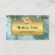Business card featuring an abstract teal green marble-look design with a gold frame to allow for easy addition of text. The logo is optional, as is the easy to customise QR code template on the back.