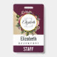 Gold Marble Pattern and Burgundy Florals Monogram ID Badge