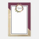 Large sized sticky notes with a golden marble pattern and a solid burgundy colour layered diagonally together. A white rectangle layered over top to write inside. A circle with a faux gold foil border which is layered over a pretty floral bouquet with roses, carnations and other flowers, placed at the top. Personalise with your name and monogram inside the circle.