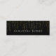 Chic and elegant business cards in a paper-saving mini size feature classic white lettering on a rich black background adorned with vertical strands of faux gold foil string lights. Add your full contact information to the back. A unique and elegant choice for any occupation; example shown for event planners.