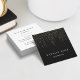 Elegant and simple design in a unique square format features classic white lettering on a rich black background with vertical strands of faux gold foil string lights cascading from the top. Personalise the front with your name and business name or occupation, and add your full contact information to the reverse side. A beautiful choice for any occupation; example shown for aestheticians.