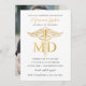 Faux gold MD and caduceus medical symbol. Works as both a graduation party invitation or a graduation announcement. Photo on the back is optional