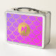 Gold Mermaid Scales Pink Glitter Pattern Monogram Metal Lunch Box
