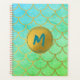 Gold Mermaid Scales Teal Glitter Pattern Monogram Planner
