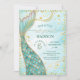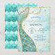 Enchant your celebration with this elegant mermaid invitation, featuring a shimmering gold-finished tail, turquoise and green background, and sparkling gold bubbles—perfect for girls who dream of magical undersea adventures!