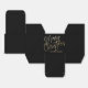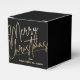 Merry Christmas in a faux gold foil script and your names in chic lettering, wraps around these 2" square black boxes, a stylish way to package holiday party favours or gifts.
