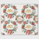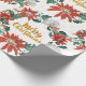 Gold Merry Christmas Floral Wreath with Poinsettia Wrapping Paper