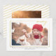 This holiday card features the text Merry in a handwritten script font in faux gold and a frame. The back features a gold diagonal pattern with an optional second photo