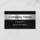 A metallic nameplate in smooth gold look stainless steel chrome on the front of the card with a dynamic black background gives a bold, unique 3d look professional-looking business card. Easily customise with your own information. Use the matching gold stylish font shown or easily change the font style and colour. Also you can easily change the black colour background to any colour. Just click on "Customise it" and then click on "edit" and then "background" to change the black background. A unique, stylish, classy looking card, especially great for industrial, skilled trades in construction and building occupations or auto, jewellery, gold sales, etc. More information can be put on the back as well on the same slick black background. Shown is the GOLD PAPER to achieve the rich golden tone look card. A white paper choice will give an elegant silver look to the card. Either paper is impressive and will result in a strong business card that stands out from the rest.