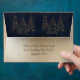 Faux gold metallic with black background and faux fairy light pine trees on back flap. Return address on bottom. Simple and yet so beautiful and elegant. Make a statement with this chic envelope. All your guests will love receiving their invitation in such a lovely envelope. Great for weddings, Christmas, etc.