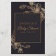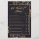 Elegant bridal shower game with golden flowers and leaves, with elegant handwritten script text font on a black background. Customise it with your own information. This item is part of a beautiful wedding collection with all you need for your big day.
