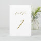 Table 1. An elegant table numbers card featuring a gold minimalist script and classic typography. This gold and white table number is perfect for weddings, graduation, baby showers, bridal showers and other events. Other number and colour are available.