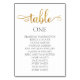 Gold Minimalist Wedding Seating Chart Card 3.5x5