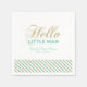 Add a personal touch to your special day with this modern baby shower paper napkin! This design features a gold glitter & mint "Hello little man" typography and stripes. More matching designs available in my shop. BaraBomDesign*