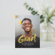 Modern brush script 4 photos Graduation Announcement with photos in front and back, simple and unique. Custom it with your own photos and grad party information.