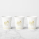 This modern graduation party paper cup features gold typography "Class of 20YY (graduation year)" and a graduation cap graphic with a confetti background. You can customize the text in black. More color options and party supplies are available at my shop BaraBomDesign.