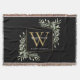 Gold Monogram Elegant Greenery Black Throw Blanket