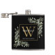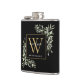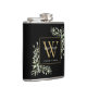 Gold Monogram Elegant Modern Greenery Black Hip Flask