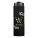 Gold Monogram Elegant Modern Greenery Black Thermal Tumbler