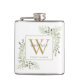 Gold Monogram Elegant Modern Greenery Hip Flask