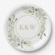 Gold Monogram Eucalyptus Greenery Paper Plate