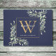 Gold Monogram Greenery Floral Navy Blue Doormat