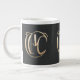 A minimalist, personalized mug featuring a large initial in a modern serif font with a luxurious metallic gold outline. A perfect, elegant gift.