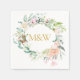 Featuring a delicate watercolor roses floral greenery garland, this chic paper napkin can be personalised with your monogram initials set in elegant gold text. Designed by Thisisnotme©