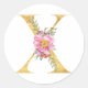 Gold MONOGRAM letter X with flower Classic Round Sticker