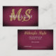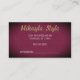 Perfect for a stylist, beautician, event planner, interior decorator, and many other professions, this business card features your initials in large, gold script, with your business name in white superimposed on it. The background is dark, textured burgundy with a "spotlight effect," highlighting the centre. Very elegant and professional-looking! The back is also textured burgundy, with space for more information, appointments, etc.