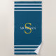 Gold Monogram/White Name White Stripes, Ocean Blue Beach Towel