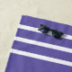 Gold Monogram/White Name White Stripes, Purple Beach Towel
