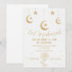 Celebrate your Eid in elegance with this stunning Minimalist Gold Moon and Stars Invitation. This design features a clean, white background adorned with beautiful hanging gold crescents and stars, creating a sophisticated and modern look for your Eid al-Fitr or Eid al-Adha party. The chic gold calligraphy and delicate floral line art at the bottom add a touch of grace to your celebration.