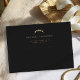 The "Gold Moon Black Wedding Envelope" sets the celestial tone from the moment it's received against a mysterious interior black backdrop. The golden crescent moon, stars, and moon phases create a celestial constellation.