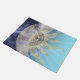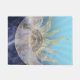 A whimsical, mystic universe nebula gold crescent moon and wavy rays sun mandala celestial design, featuring a crescent stage glowing moon with mandala flowers and night dark blue nebula galaxy stars, dots, circles geometric shapes, mermaid scale, and wavy rays sun mandala, floral and leaves doodling art, made with a faux yellow gold texture, and daylight sky blue background. This beautiful, mystical, cute moon, and sun henna mandala style universe theme, original artwork is perfect for home decor, everyday wear, special occasion, or theme decorations.