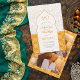 Our Moroccan inspired wedding invitations with a beautiful gold saffron arch and floral wooden texture colour block are the perfect choice for a unique and unforgettable wedding celebration. Get ready to impress your guests and set the tone for your big day, featuring pretty initials, add 3 of your photos, the colours are fully editable. Perfect for exotic, tropical destination wedding.
