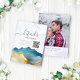 Modern Vintage Elegant Wedding Directions / Accommodations and Information QR Code Cards / Guest Information Card / Wedding Details Enclosure Cards Template - Blue Green and Faux Gold Foil Watercolor Mountains Landscapes Scenery.