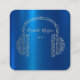 Gold Music Notes Headphone DJ Blue Metallic Square Business Card