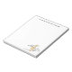 This elegant music notepad design features a custom name, with a gold treble clef and stylised music staff with notes.