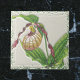 This decorative ceramic tile features a gorgeous darj reddish lady slipper flower, facing to one side, in the style of vntage botanical illustrations. The lady slipper orchid flower often appears in small openings, grassy meadows, woodsy knolls, and prairies, and it's a protected plant in some states. The tile has a faux 3D texture - it's printed flat although it appears to have dimensions to the surface.